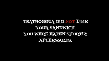 Oh no! You've wandered into the cave of Tsathoggua! Maybe if you make him a sandwich, he'll let you leave...
